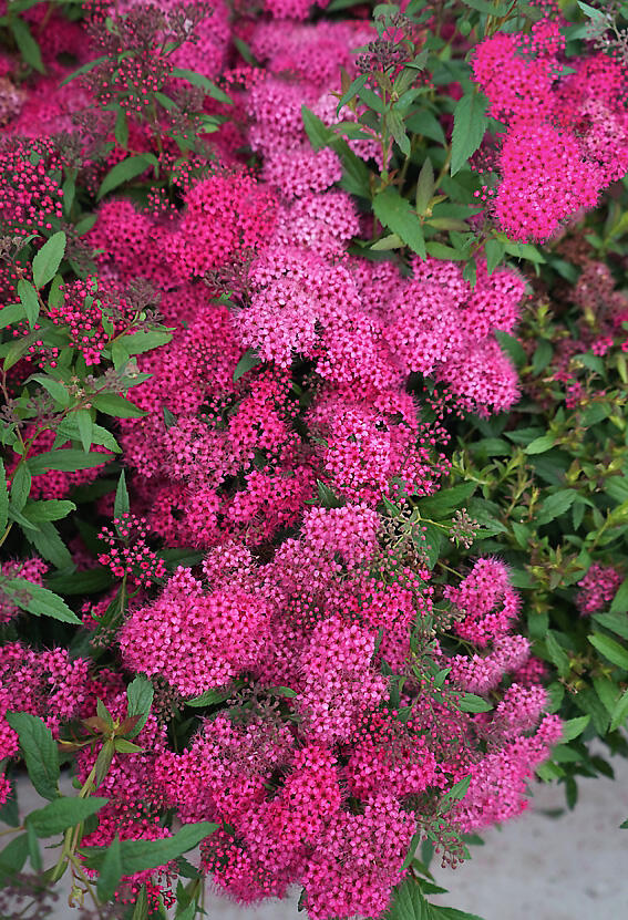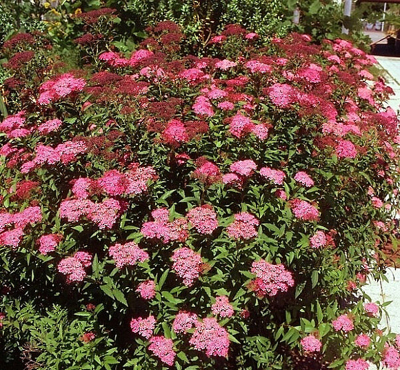 Ярко и обильно цветущий акцентный сорт спиреи. Прямостоящие побеги образуют крону правильной формы, до 1 м в диаметре. При распускании листья темно-зеленые с красноватым оттенком, а к осени приобретают уверенный красный цвет. Плотные темно-амарантовые соцветия не бледнеют на протяжении всего периода цветения. Цветет почти все лето, может повторно зацвести и осенью. Растение неприхотливо в уходе, зимостойкость до −35 °С.