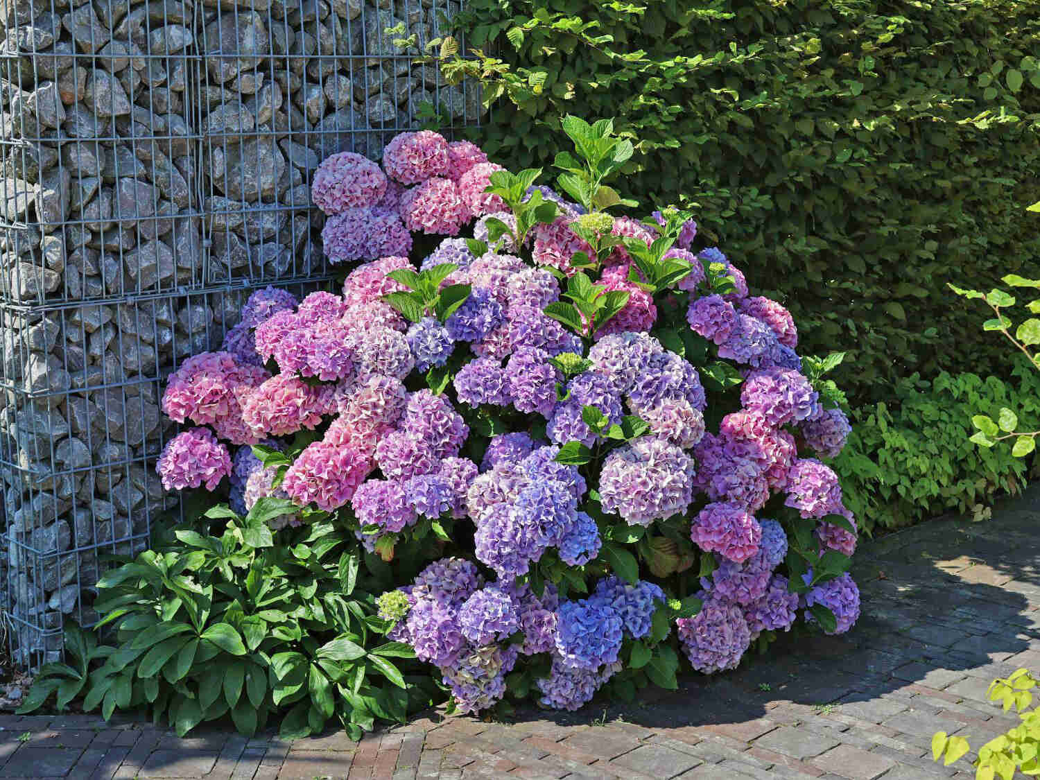 Создавая разную среду (кислотную или щелочную) с разных сторон одного куста, можно добиться одновременного присутствия на одном растении и розовых и голубых цветов.