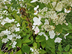 Использую гортензии очень широко. Они отлично смотрятся в любых цветниках как солитер, или в сложных композициях с декоративными кустарниками, и особенно, с хвойниками. Великолепно выглядят при входе в дом или на участок. Сажают гортензии так же в качестве свободнорастущей живой изгороди. Засушенные соцветия долго сохраняют декоративность и используются в зимних букетах.