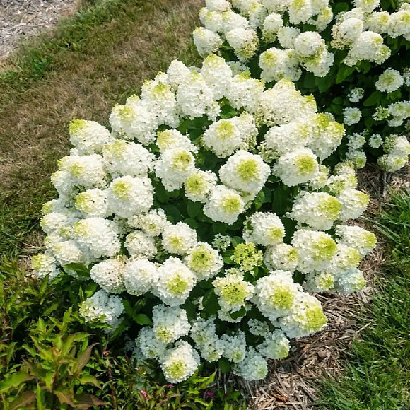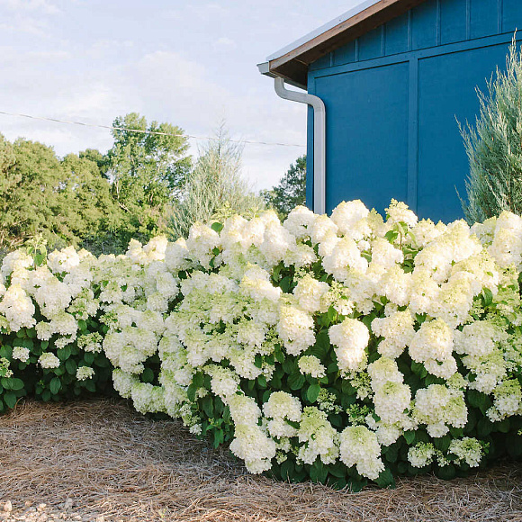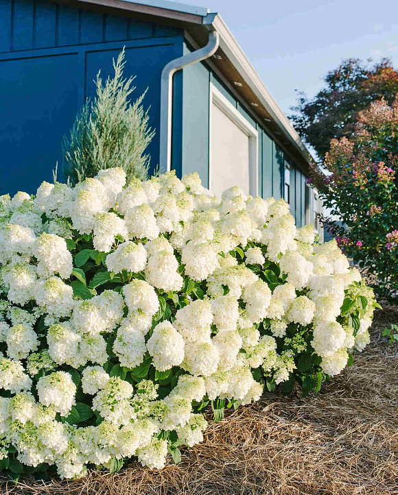 Исключительно нарядный, компактный, хорошо разветвленный сорт с обильным цветением и высокой устойчивостью к жаре. До самых заморозков куст усыпан крупными, плотными метелками. Соцветия вначале салатовые, затем становятся сливочно-белыми. Побеги вертикальные, жесткие. Отлично подходит для выращивания в контейнерах. Зимостойкость до −40 °С.