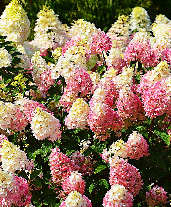 Использую гортензии очень широко. Они отлично смотрятся в любых цветниках как солитер, или в сложных композициях с декоративными кустарниками, и особенно, с хвойниками. Великолепно выглядят при входе в дом или на участок. Сажают гортензии так же в качестве свободнорастущей живой изгороди. Засушенные соцветия долго сохраняют декоративность и используются в зимних букетах.