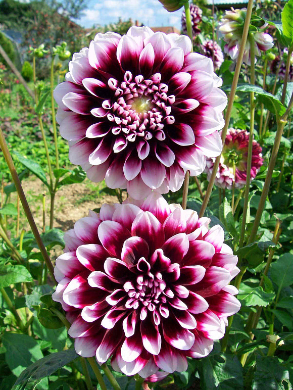 Цветущие георгины всегда выглядят безупречно: и под палящим солнцем, и после летнего ливня. Трудно представить себе деревенский пейзаж без золотистых, алых,
