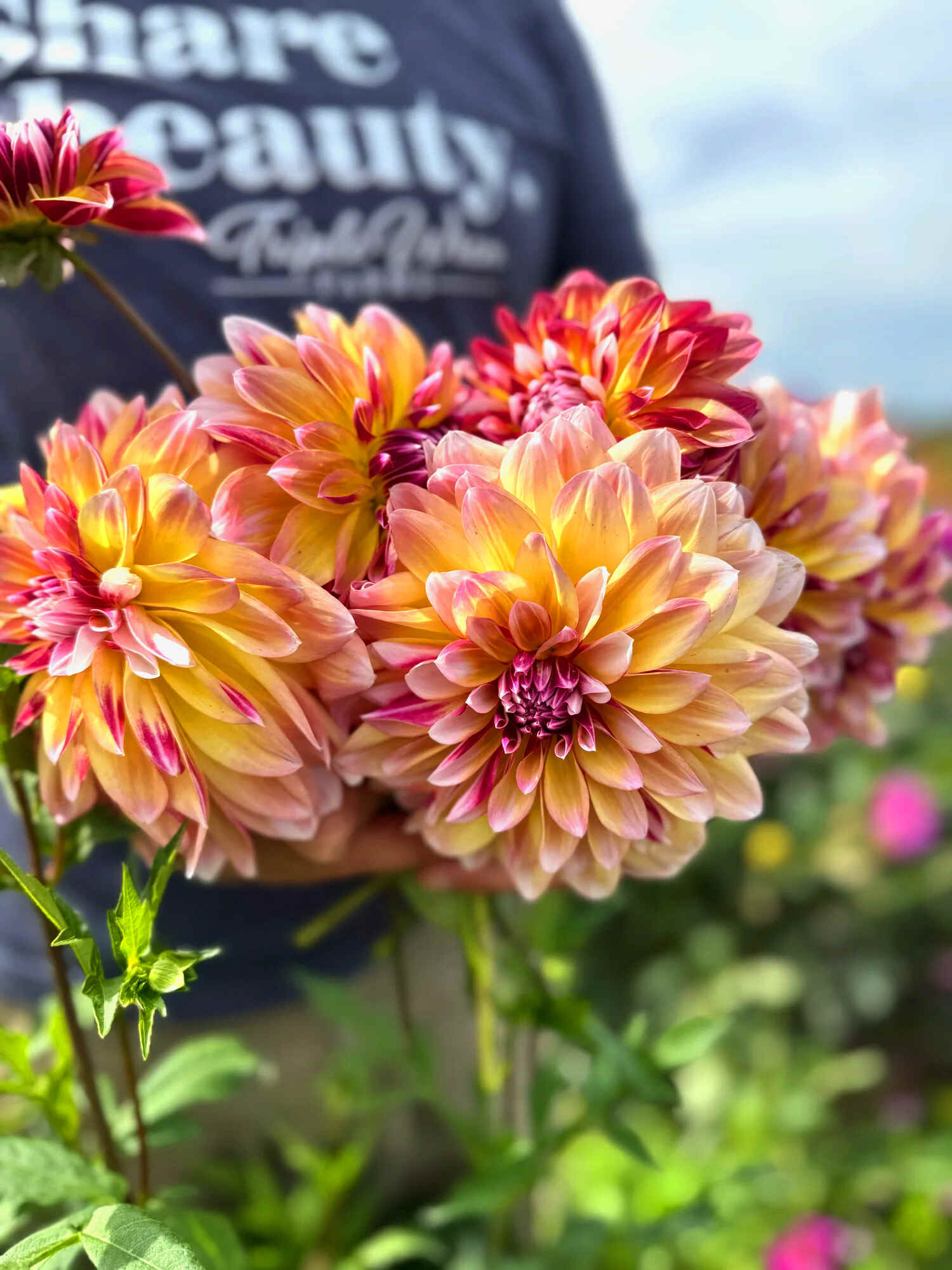 Георгины — пышные и яркие цветы, играющие тёплыми красками лета до глубокой осени. Они приветливы и доброжелательны, неисправимые оптимисты и жизнелюбы. Цветущие георгины всегда выглядят безупречно: и под палящим солнцем, и после летнего ливня. Трудно представить себе деревенский пейзаж без золотистых, алых, розовых или рубиновых головок георгинов, возвышающихся над плетнём или штакетником.