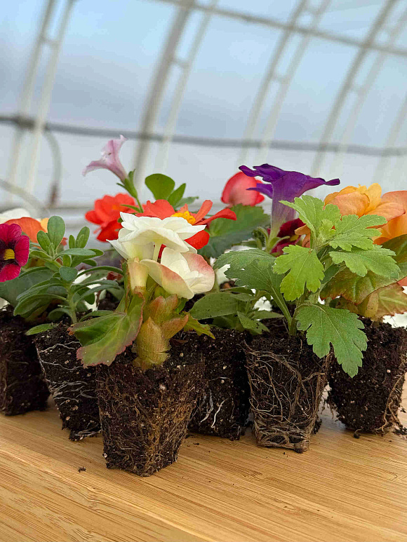 Черенки вегетативно размноженных цветов будут доставляться к вам укорененными с полностью оплетенным корнями комочком торфа. Выращиваемые из черенков растения активно развиваются, обильно и длительно цветут.