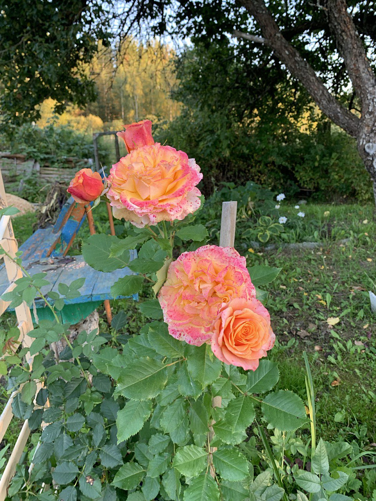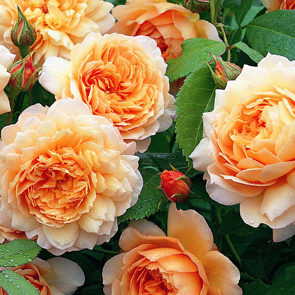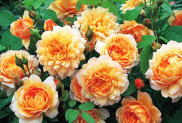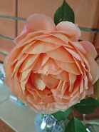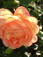 Изумительная роза с теплыми абрикосовыми и лососево-розовыми оттенками. Цветки крупные, диаметром до 10 см, густомахровые, с нежным чувственным ароматом. Форма бутона чашеобразная, при раскрытии становится очень объемной, георгиновидной. Цветет продолжительно, практически непрерывно. Разрастается до 120 см в диаметре.