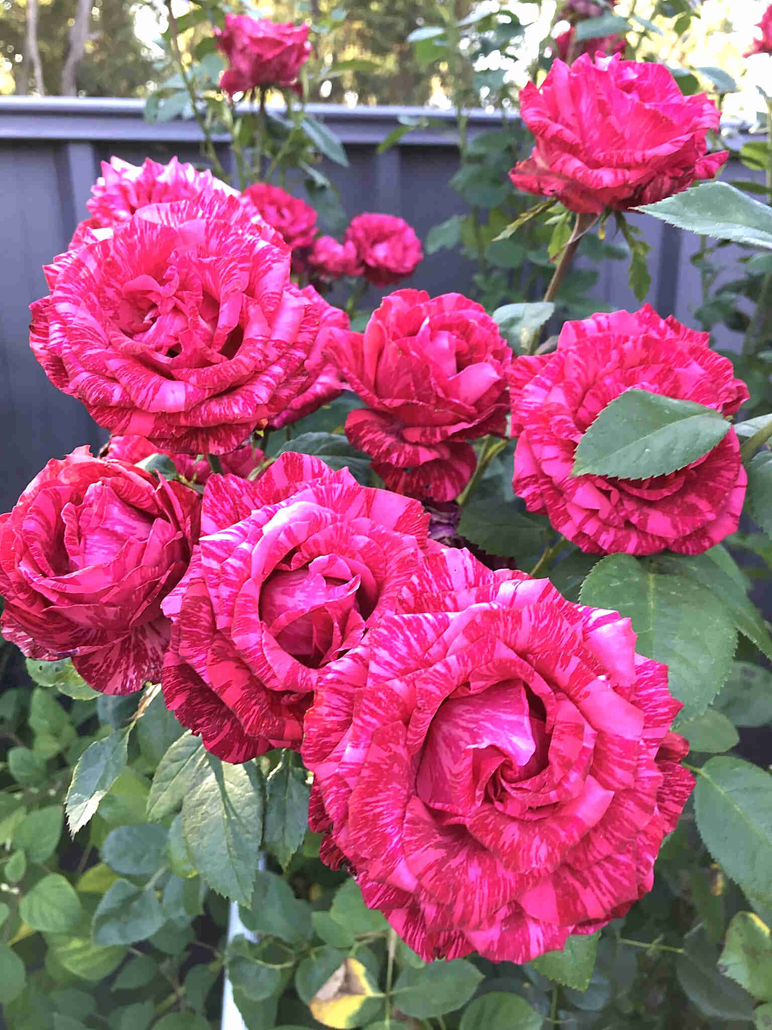 Исключительно волшебный сорт! Цветки пышные густомахровые, диаметром 10–12 см, со множеством темно-малиновых лепестков с бордовыми полосками. Аромат тонкий, похож на майскую розу. Отличается длительным непрерывным цветением. В срезке стоит до двух недель. Кусты крепкие, слабошиповатые. Сорт неприхотливый, не капризный. Зимостойкость до −30 °С.