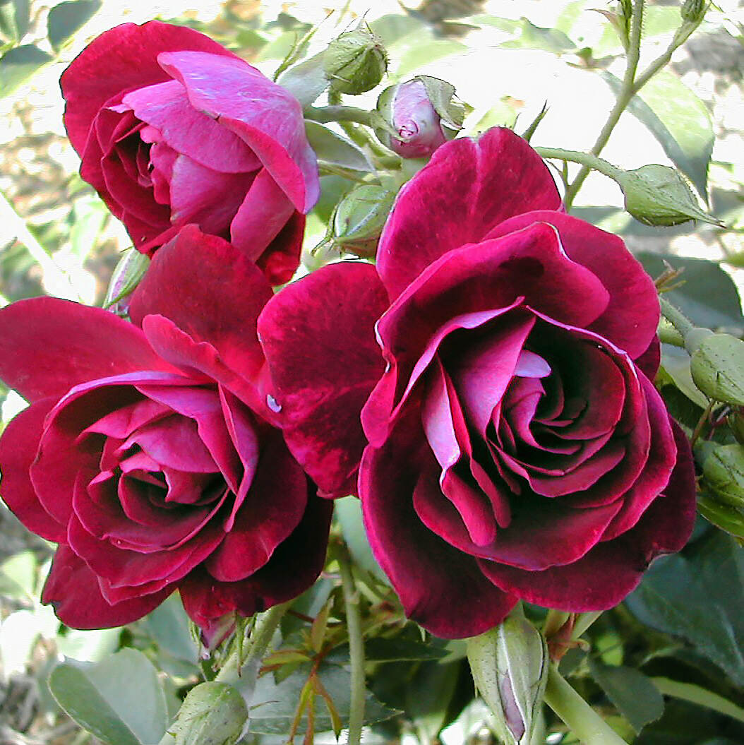 Стоит увидеть окраску воочию, чтобы поверить, что она и в самом деле такая. Это густо-сливовый, почти мистический цвет. Лепестки бархатной текстуры. Отличается невероятной обильностью цветения. Аромат ненавязчивый с нотками гвоздики и меда. Цветение интенсивное и непрерывное. Распустившиеся бутоны держатся на побегах довольно долго. Диаметр цветка 7–8 см. Куст компактный, густой, шаровидный. Зимостойкость до −30 °С.