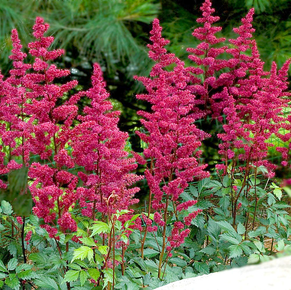 Невероятно эффектные пушистые метелки-соцветия красно-малинового цвета на фоне ажурной глянцевой листвы уже почти столетие украшают садовые и парковые ландшафты. Прямостоячие красноватые побеги добавляют растению особую декоративность. Хорошо смотрятся в срезке. Нежный сладко-медовый аромат привлекает большое количество бабочек и других насекомых-опылителей. Высаживают астильбу группами для формирования бордюров и клумб, для оживления каменистой местности, для добавления яркого акцента на фоне зеленых лиственных кустарников и хвойных деревьев. Идеальное место для посадки данного сорта – легкая полутень, особенно вблизи водоема. Влажный воздух способствует сохранению ярко выраженных цветовых оттенков на протяжении всего сезона. Не требует особого ухода, в средней полосе России прекрасно зимует под снегом.