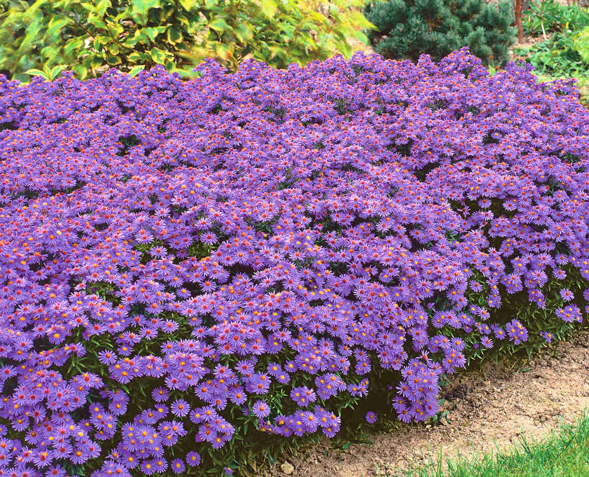 Яркая сине-фиолетовая астра с контрастным желтым центром. Образует компактные шарообразные кустики высотой до 50 см, сплошь усыпанные крупными цветками, характерной формы с продолговатыми лепестками, насыщенных оттенков. Цветение обильное с августа по октябрь. Отлично смотрится в групповых посадках, миксбордерах, бордюрах и даже в контейнерах остается очень эффектной.
