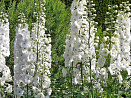 Этот дельфиниум привлекает внимание внушительными размерами и крупными махровыми белыми цветками диаметром около 7 см. Его мощные соцветия достигают длины до 80 см (!), создавая эффектные вертикальные акценты в саду. Возможно повторное, хотя и более скромное, цветение в начале осени. Галахад прекрасно вписывается в различные стили ландшафтного оформления, подходит для украшения заборов, разноуровневых клумб и создания ярких акцентов на газоне. В срезке сохраняет свежесть в течение долгого времени, что делает его отличным выбором для создания оригинальных букетов. Несмотря на крупные размеры, растение требует определенного внимания к себе: не очень хорошо переносит как длительный палящий зной, так и затяжные дожди. Зачастую садоводы выращивают его как однолетник или двухлетник. Зимостойкость –34 °С.