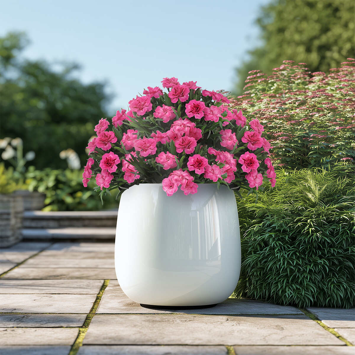 Новейшие широколистные сортосерии благоухающих компактных гвоздик. Отличаются исключительной однородностью и долговечностью. Образуют густые, хорошо разветвленные кустики, покрытые крупными махровыми душистыми цветками, диаметром 4–5 см, самых различных окрасок. Растения засухоустойчивые. Идеальное решение для контейнеров, балконных ящиков, подвесных вазонов и кашпо. Рекомендуем обильный полив раз в неделю. Отцветшие цветки прищипывать у основания. В суровом климате Урала и Сибири выращивается как однолетник.