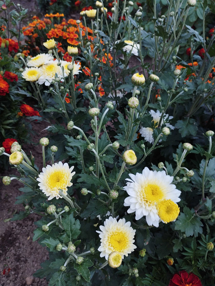 Почвы. Не переносит хризантема тяжелых и влажных земель. В таких местах она может вообще не зацвести. Почва ей нужна легкая, рыхлая плодородная с нейтральной реакцией (рН 6,8 – 7,0). При близком залегании грунтовых вод кустики нужно сажать на клумбы высотой 40 см.