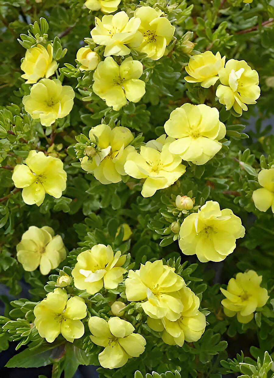 Лапчатка кустарниковая (курильский чай) много лет любима садоводами. Густую крону этого кустарника часто называют ажурной. Это обусловлено удивительным сочетанием ярких многочисленных бутонов с оригинальной воздушной листвой. Побеги нежно-зеленые, с легким оттенком серебра, довольно тонкие, чаще всего образующие полусферу либо шар. Очень сильно ветвятся и создают объемный эффект глубины. Кустарник зимостойкий, хорошо переносит засуху. Пышное цветение продолжается до заморозков. Весенней обрезкой можно сформировать крону и усилить пышность цветения.