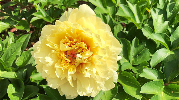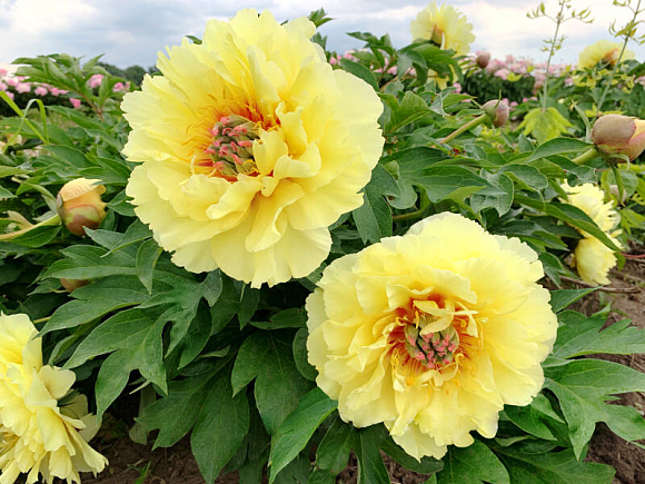 Завоевал множество международных наград. Ито-гибрид. Образует красивый крупный куст с огромными эффектными цветами, крепкими стеблями и большими листьями. Цветок имеет до 50 лепестков, а на взрослом растении, при благоприятных условиях, образуется около 50 цветков! Срок цветения средне-поздний, цветение продолжительное. Зимостойкость до -25°С.