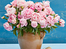 Розовая волна нежности и опьяняющих ароматов легко вскружит голову кому угодно. Цветки пышные, крупные, махровые. Цветёт в поздние сроки, продлевая волшебное и неповторимое время цветения пионов. Зимостойкость до -35°С.