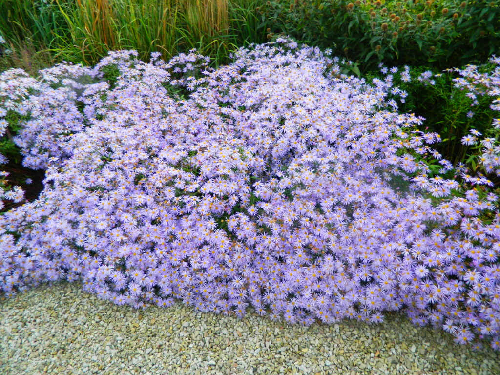 Цветки этого очаровательного травянистого растения напоминают ромашки, но имеют необычный синий или голубовато-сиреневый оттенок. Листья длинные, заостренные, с зубчатыми краями. Куст округлой формы быстро разрастается до 60 см в диаметре, идеально подходит для участков в естественном природном стиле. Он привлекает пчел и бабочек и прекрасно смотрится в букетах. Калимерис Блю Стар неприхотлив, зимостоек, обладает отличным природным иммунитетом.