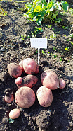 Высокопродуктивный сорт уральской селекции. Клубни красивые, овальные, с ярко-красной кожурой и кремовой мякотью. Сорт среднеспелый, первую копку можно выполнить через 80–95 дней после всходов. Количество клубней в лунке – от 15 до 25 штук, средняя масса 110–150 г. Картофель отличного вкуса, универсального назначения, не разваривается. Сорт устойчив к фитофторозу и раку картофеля. Хранится до лета.