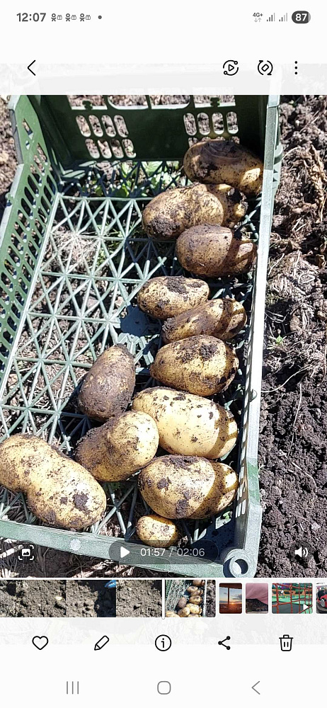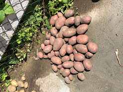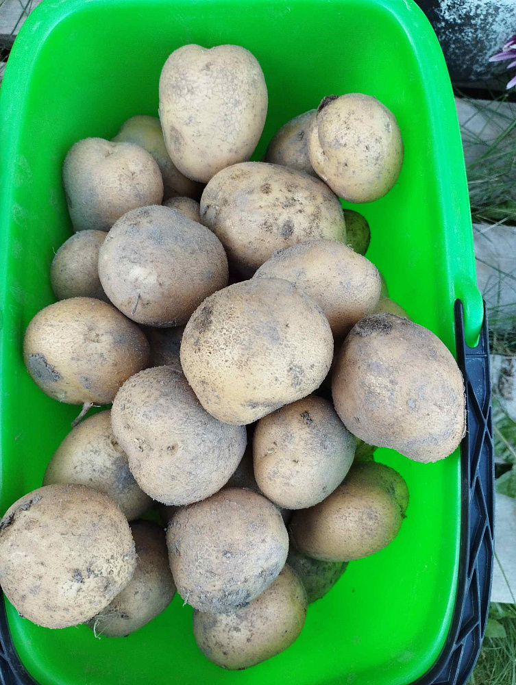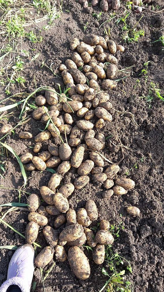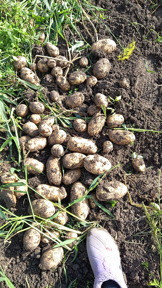 весной получила заказанные мной 2 сорта, первое фото Банкир, второе Скарб. В упаковке по 10  маленьких картошин хорошего качества. На фото урожай с 9ти шт каждого, по одному выкопала на пробу. Отдельно про погоду в нашей Омской области (север), лило все лето, из посаженной картошки смогли выкопать только треть, и то часть сразу выкинули все сгнило на корню, 2/3 даже копать не стали. У этих сортов гнилой не было ни одной! Все оставила на семена. По вкусу тоже понравилась, напоминаю любимую Галу