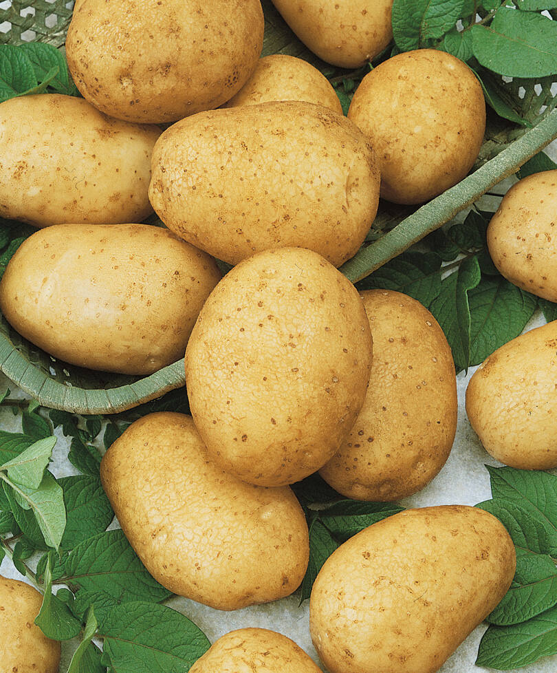 Для тех, кто любит покрупнее. Большие округлые клубни с мелкими глазками, масса которых часто доходит до 400 г. Это настоящие золотые слитки! Сорт среднеранний, с высокой урожайностью, отлично хранится. На разрезе плотный, одномерный, имеет кремово-желтый окрас мякоти. Вкусовые качества высокие. Содержание крахмала до 17 %. Идеально подходят для жарки, приготовления пюре и запекания. Сорт устойчив к раку, отзывчив на внесение минеральных удобрений. Урожайность 4,5-5 кг.