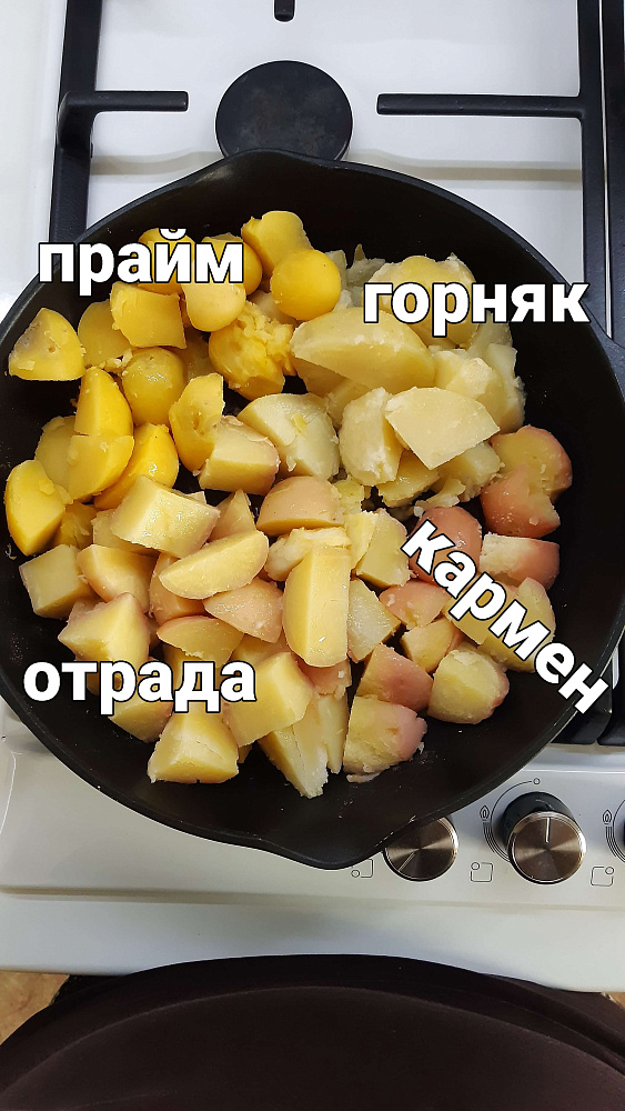 Прайм желтый картофель и внутри тоже. очень выраженный картофельный вкус, нам очень понравился. В собранном урожае 2023 больше было средних размеров картофелин, чем крупных. Надеюсь в следующие посадки будет лучше урожай. Этот сорт тоже будем разводить.