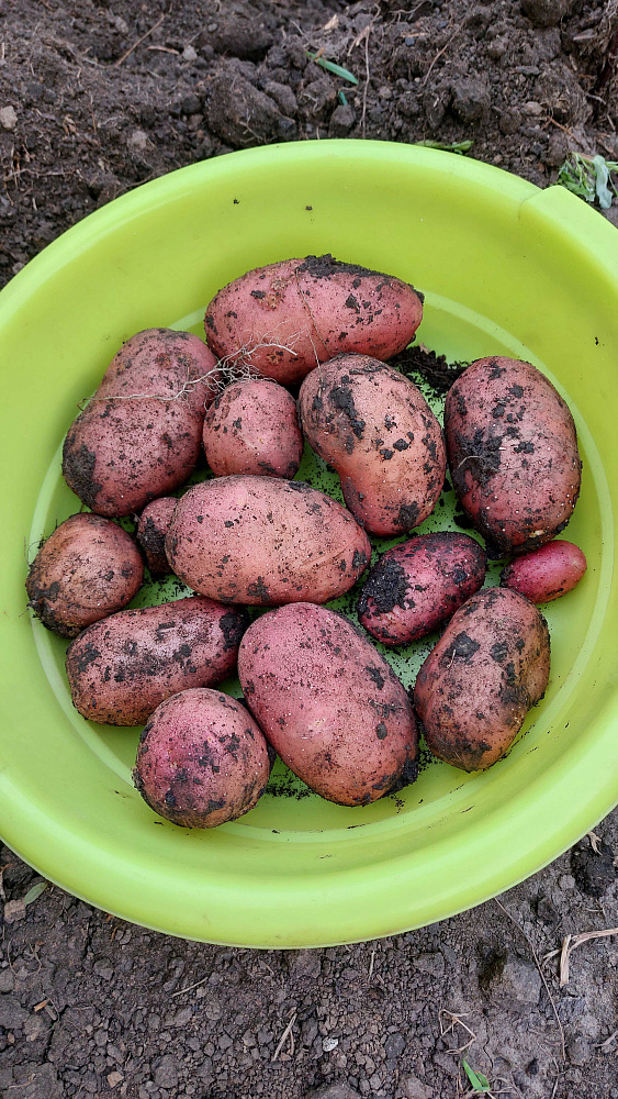 Мелкие клубни использовала как посадочный материал на следующий год. в одном кусте обычно 1-2 таких картошечки.