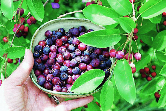 Ирга красива и при распускании серебристых пушистых почек, и во время цветения, и на всём периоде поспевания ягод - созревание не одновременное, так что куст щедро украшен зелёными, красными и синими ягодами.