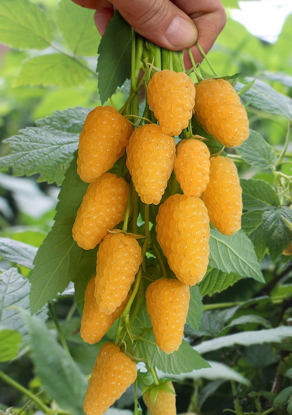 Новый невероятно крупноплодный ремонтантный сорт, выведенный российскими селекционерами. Побеги усыпаны большими вытянутыми ягодами, очень красивого желтого цвета, массой 7–8 г. Мякоть плотная, вкусная, с потрясающим ароматом. Не пекутся на солнце. Хорошо отделяются от плодоножек при сборе. Созревание происходит равномерно, начинается с середины августа и до первых заморозков. Высота куста 160–180 см. Сорт отличается высокой урожайностью (в среднем 5–6 кг с куста), хорошей устойчивостью к бактериям и болезням. По технологии возделывания предусмотрено осеннее скашивание побегов. Зимостойкость до −35 °С.