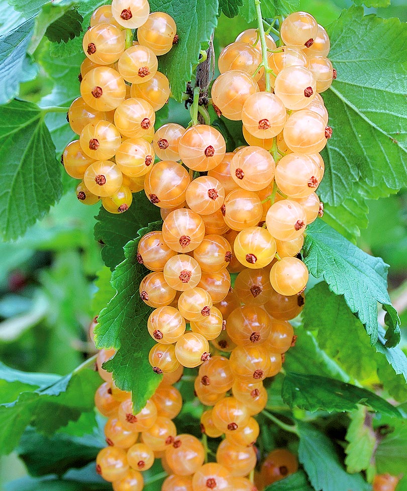 Нарядное весеннее цветение мелкими лиловыми цветами, собранными в поникшие сережки. В июле созревают грозди крупных белых ягод до 1 см в диаметре. Тонкая полупрозрачная кожица с чуть розоватым оттенком. Мякоть ароматная, десертная, сладкая, с легкой кислинкой. Можно есть в свежем виде или готовить деликатесные джемы и муссы. Сорт скороспелый, очень морозостойкий и неприхотливый. Высота куста 1-1,5 м.