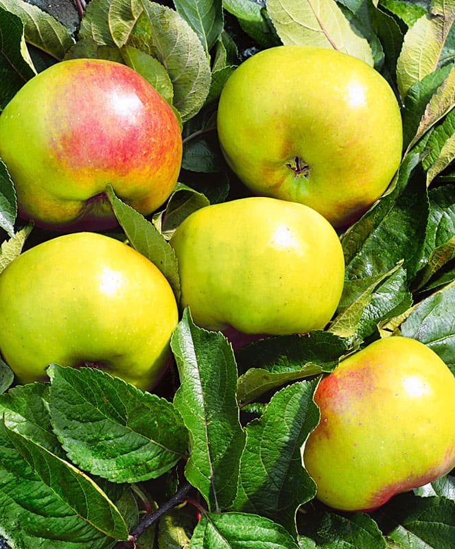 Яблони, способные расти и плодоносить даже в экстремальных условиях. Первые плоды уже на 3-4 год! Яблоки зеленовато-желтые, с обширным красным румянцем и гладкой блестящей кожицей. Мякоть отличного вкуса, сладкая, с кислинкой. Плоды годятся для любых заготовок, осенних салатов, вкусны в свежем виде, хранятся до 140 дней. Растения карликовые, высотой около 2 м, с очень хорошей зимо- и морозостойкостью. В сырые годы могут поражаться паршой. Урожай с деревца до 120 кг. Рекомендуемый опылитель – Приземленное.
