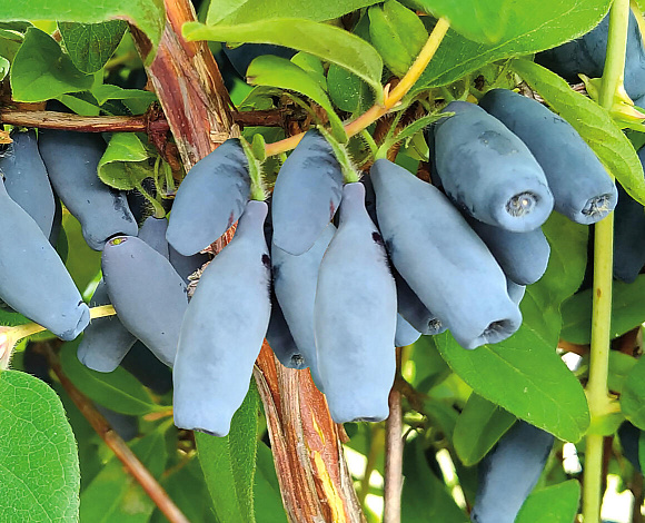 Никаких хлопот и волнений после морозной зимы! В конце июня–начале июля просто собирайте огромный урожай сине-фиолетовых ягод. Их вкус приведет в восторг даже гурманов, – гармоничная сладость с кислинкой и без следов горечи. Ягоды красивые – вытянутые, около 5 см длиной, с упругой кожицей, покрытой сильным налетом. Осыпаются слабо. Кусты компактные, до 1,5 м в высоту и ширину, сбор ягод и уход за растениями очень просты. Плодоносит эта жимолость уже на следующий год после посадки. Урожай с куста 5,5 кг. Нуждается в перекрестном опылении и посадке на солнечном месте.