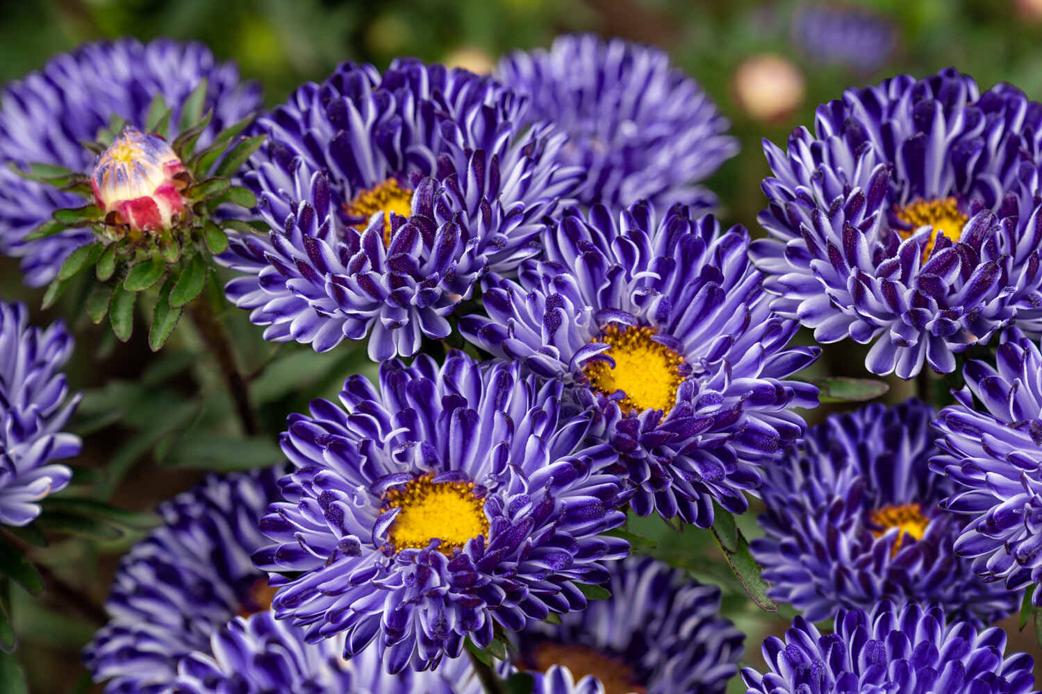 Уникальная и оригинальная низкорослая астра английской селекции с густомахровыми пестрыми цветками, диаметром 8-9 см. Каждый лепесток двухцветный, с контрастной продольной полосой. Исключительно смотрятся на клумбах и бордюрах. Куст компактный, хорошо облиственный, ветвистый. Предпочитает солнечные участки с хорошо дренированной плодородной почвой. Цветение обильное и продолжительное. Подходит для выращивания в вазонах и кашпо.