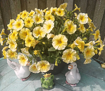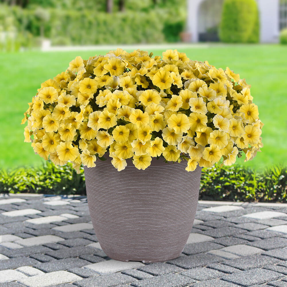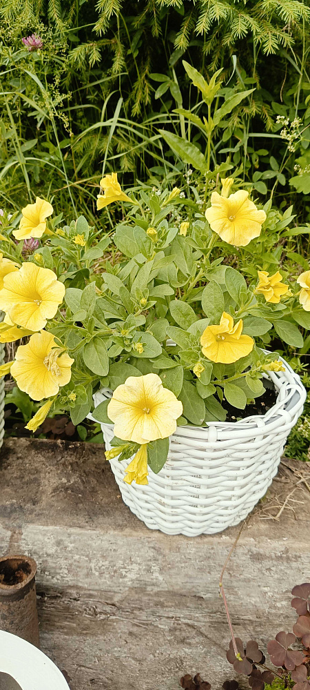 Вы еще не знакомы с петхоа? Победой селекционеров считается гибрид петунии и калибрахоа. Цветет лавинообразно, обильно и непрерывно. Не вытягивается, не требует прищипываний. Стабильно формирует аккуратный шарообразный куст. Ярко-желтые цветочные «граммофончики» отличаются крепостью и устойчивостью к ветру и дождю. А когда они увядают, то сами легко отпадают и не портят эстетику.
