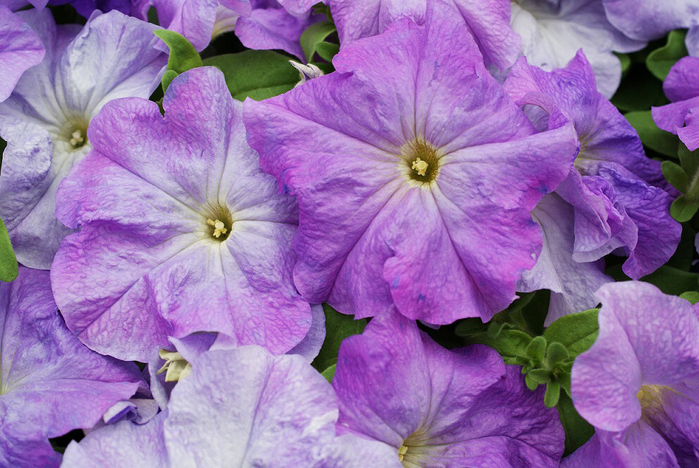 Очень интересная генетически низкорослая бархатная сортосерия. Одна из лучших среди петуний крупноцветковых. Кустики покрыты цветками гигантских размеров – до 12 см в диаметре. Сохраняют декоративность и в длительное ненастье. Теплолюбива. Рассаду высаживают в грунт после того, как минует угроза возвратных заморозков.