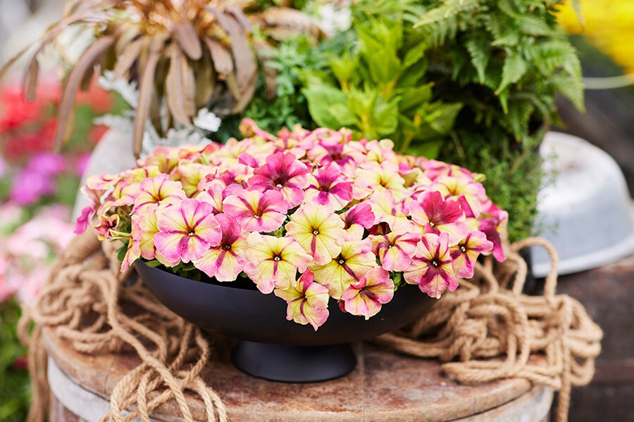 Очень красивые цветы. Сажала вместе петунии Шейк строуберри и Шейк Расберри. В горшке по два растения.