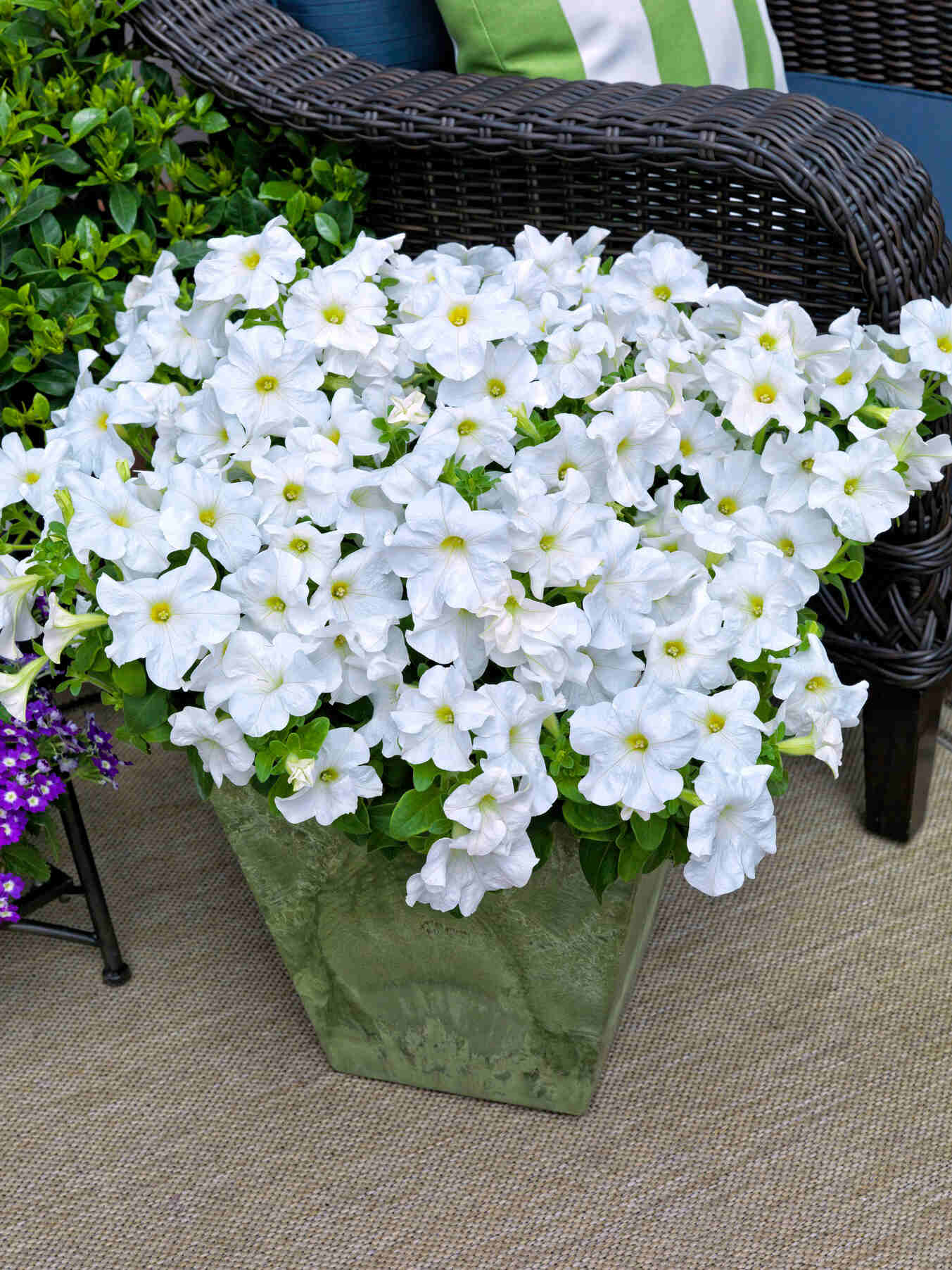 Высаживают петунию на расстоянии 30 -40 см друг от друга. В кашпо по 1 растению. Высаживать петунию лучше вечером после захода солнца или в пасмурный день. Несколько дней после высадки петунию нужно притенять от прямых солнечных лучей.