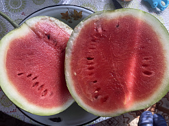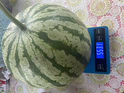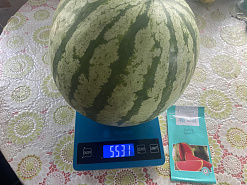 Очень вкусный и сладкий арбуз. На одной плети за сезон вызрело 2 арбуза. Первый был весом 5530, второй был чуть меньше 3500.