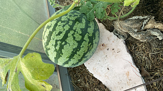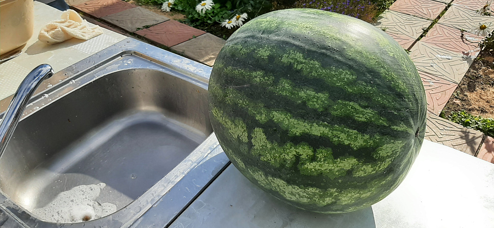 Сажаю несколько лет в теплице. Оставляю по 1-2 шт на плеть. Успевает созреть каждый год (вторая половина августа, начало сентября). Обычно от 5 до 6 кг. Арбуз очень вкусный и сладкий.  А в этом году один дорос аж до 13 кг (рекорд!). На фото он 08.09.25.