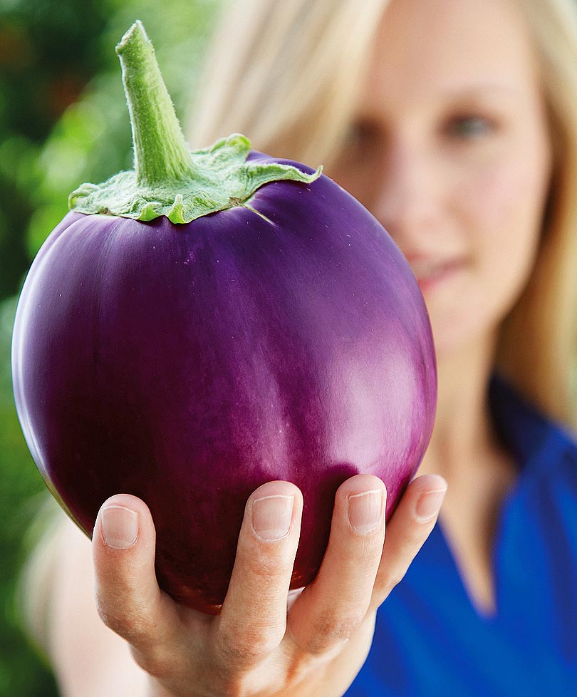 Мы привыкли, что баклажаны бывают красивой грушевидной формы, но это классический вариант. Плоды у «Шалуна» – увесистые шары совершенно правильной формы и пурпурно-фиолетовой окраски. Отличный вкус без горечи.