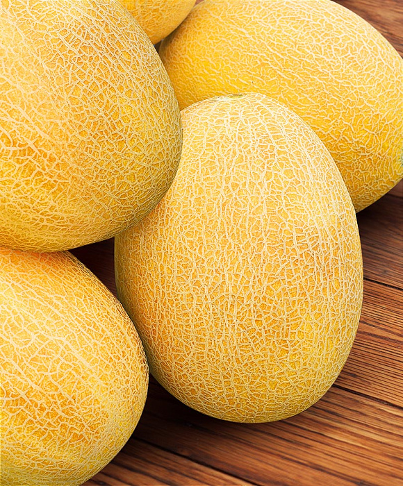 Божественный десерт. Великолепная ранняя дыня, по праву заслужившая титул «сладкий ананас». Плоды очень привлекательные, золотисто-жёлтые, с красивой сетчатой вуалью, однородные, отлично выровненные, округлые, без сегментов. Мякоть кремово-белая, с очень приятным ароматом, изумительного «ананасного» вкуса.