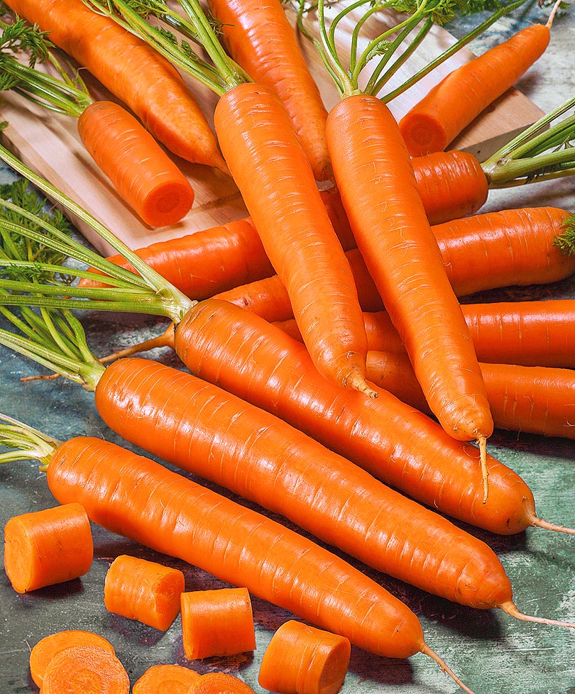 Когда Вы готовите для свежего употребления тёртую морковь, то, как правило, посыпаете её сахаром. Однако в последние годы созданы новые гибриды, которые можно есть без сахара, настолько они сладкие и вкусные. Для характеристики этой моркови больше всего подходит слово «уникальная». Уникальный вкус и цвет – оранжево-красный. Уникально высокое содержание сахара, каротина, витамина В. Засухоустойчива. В течение хранения никакой гнили обнаружить не удаётся. Очень высокая энергия роста и необыкновенная жизненная сила. Мощная ботва высотой до 60 см. Достаточно быстрое созревание и уникальная лёжкость позволяют убирать эти новые гибриды не в октябре, как обычно, а сразу после 15 сентября.