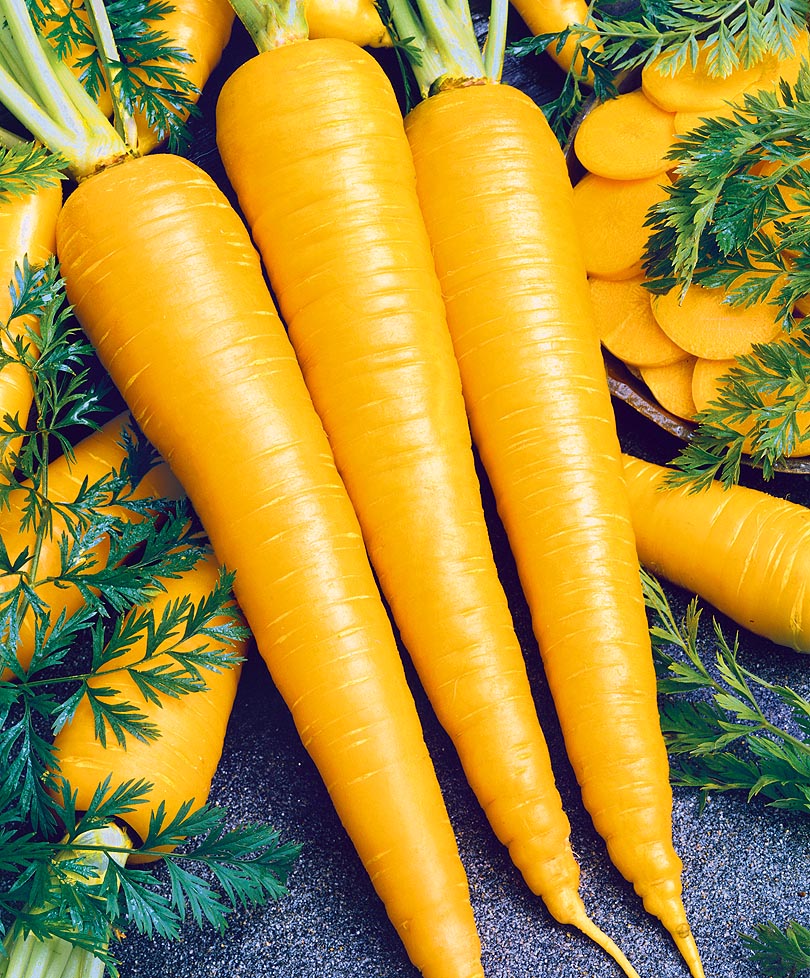 Необычная морковь солнечного желтого цвета. Отличается повышенным содержанием лютеина – очень полезного для зрения вещества. Корнеплоды крупные, до 24 см длиной. На вкус гораздо слаще, чем обычная морковь.