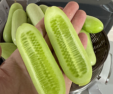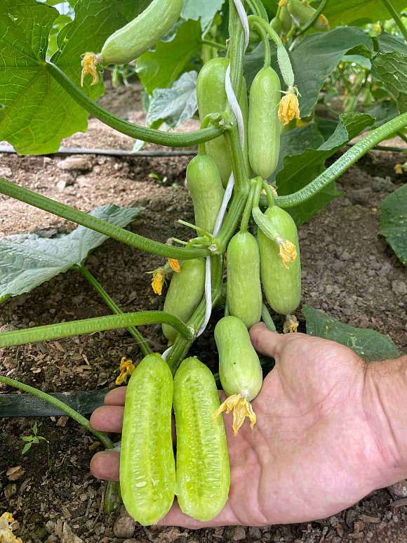 Мы часто ездили в Грузию и там первый раз попробовали такие светло-зеленые огурцы, несколько лет назад, дети их очень полюбили за тонкую кожицу, нежную мякоть и аромат, и всегда мы привозили домой несколько килограмм. И вот купив семена осенью 2024 года очень ждала сезона. Стоимость семян высокая((( Что же вырастет??? Взошли все три семечки. и оправдали все мои ожидания!!!! Очень, ОЧЕНЬ вкусные, дети в восторге, особенно малыши, рекомендую всем. Достаточно одного куста, ну максимум двух. У меня в теплице 2 кустика, один подарила подруге, этого достаточно чтобы всем наесться. Если сравнивать с сортом Буратино (у меня он тоже есть в этом сезоне) Квинтон вкуснее. Все друзья, кто попробовал, закажут на следующий огородный сезон!!!
