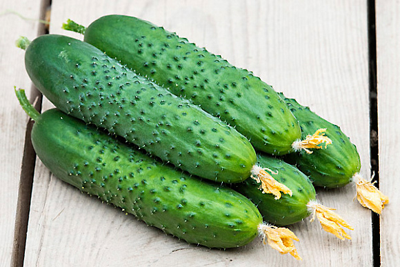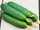 Эталон огуречной красоты и вкуса. Такие зеленцы горкой да на тарелку! Гибрид партенокарпический, корнишонного типа. Обладает суперурожайностью и ранними сроками созревания. Плодоношение запускает сразу и обильно, поэтому приготовьтесь к ежедневному сбору. Растение мощное, с короткими боковыми побегами. Цветение букетного типа. В пазухе листа образуется до 7 завязей. Зеленцы длиной 11–13 см, темно-зеленые, без полос, ровные, при перерастании не теряют красивую продолговатую форму. Мякоть сладкая, семян практически нет. Гибрид устойчив и к похолоданиям, и к жаре. Будет давать высокие урожаи и в теплице, и в открытом грунте. Недостаток солнечного освещения ему также не страшен. Устойчив к наиболее вредоносным болезням. Хорошо хранится.