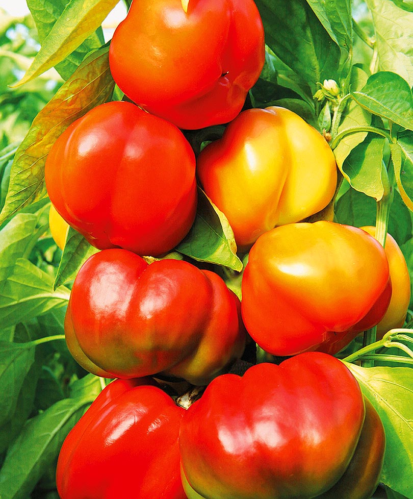 Наши перцы обладают совершенно особенным, действительно сладким вкусом. Любой ест их с удовольствием, как яблоки. Даже признанные знатоки бывают совершенно сбиты с толку и поражены дразнящим, изумительным вкусом наших перцев. Хороши они не только в свежем виде. Особый, неповторимый колорит перцы придают салатам и лечо, жаркому и разнообразным закускам. Плоды предлагаемых нами сортов и гибридов - хрустящие с толстой, мясистой и очень сочной стенкой; у многих толщина стенки достигает 8 мм. Для того, кто уже знаком с выращиванием сладких перцев, эта цифра говорит о многом