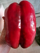 Мощный среднеспелый гибрид с высокой энергией роста. Впечатляет размерами эффектных блестящих, глянцевых густо-красных кубовидно-удлинённых плодов длиной до 15-18 см и в диаметре до 10-12 см, с толщиной стенки 8 мм. Что касается вкуса, то он великолепный, сладкий, оптимально сбалансированный. Растение полураскидистое, от средней высоты до высокого, плодоношение стабильное, завязываемость плодов высокая. Для выращивания в открытом и закрытом грунте.