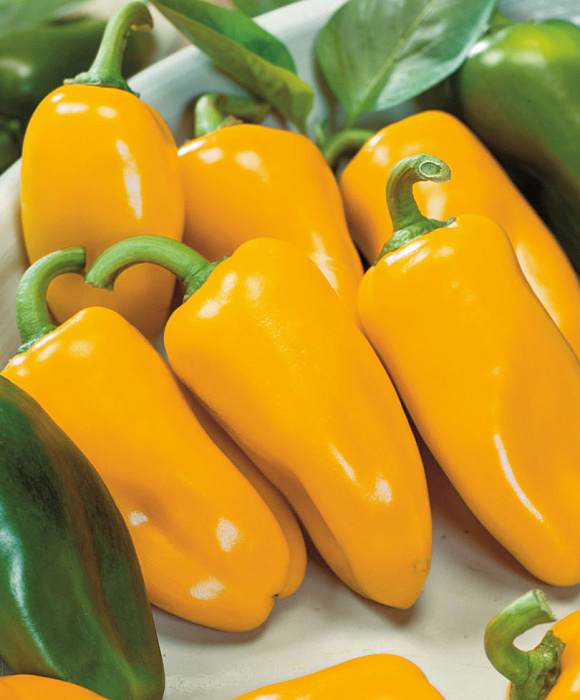 За уникальным очень насыщенным сладким вкусом этого перца «все тайны Лувра», а точнее, тайны ультраранних порционных гибридов с высокой урожайностью и устойчивостью к вирусным заболеваниям. У небольших глянцевых плодов (7-9 см) практически отсутствует семенная камера, а содержание сахаров достигает 12%! Они оччччень сладкие! Перцы конической формы темно-зеленого цвета в технической спелости и желтого в биологической. «Прелестные, как сама любовь!» С одного растения в открытом грунте вы соберете 3-4 кг плодов и 5-10 кг в закрытом. Кусты компактные, плодоносят дружно и концентрированно. Удобные и легкие при сборе. При длительном хранении не потеряют упругости и вкусовых качеств. «Это сказал Бэкингем!» (для выращивания в открытом и закрытом грунте)