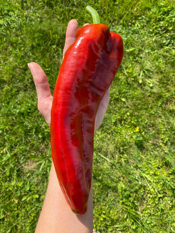 Очень необычный перец. Красивый. До 400 г не дотянули, правда. В следующем году буду сажать еще.