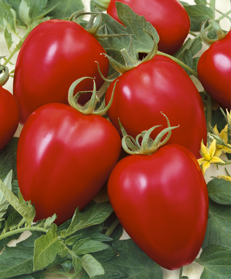 Гибрид выведен учеными старейшей во Франции селекционной компании. Плоды ярко-малиновой окраски, сливовидной формы, массой 170 г (при формировке кисти на 3-4 плода – до 500 г). Имеют замечательный вкус и аромат. Не растрескиваются. Устойчивы к основным болезням томата: вирусу табачной мозаики, фузариозному увяданию, стемфилиуму, бурой (оливковой) пятнистости и желтой курчавости листьев. Междоузлия короткие, что позволяет эффективно использовать объемы небольших парников и теплиц, а при выращивании в открытом грунте избавляет от частых подвязок растения к опоре. В общем, Бонапарт – одно решение множества томатных проблем!