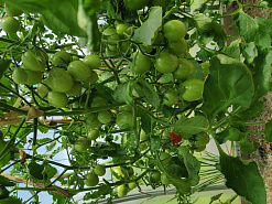 У детерминантных помидоров необходимо удалить до первой плодной кисти все пасынки и листья. Выше плодной кисти не удаляют все пасынки, а регулируют их количество. Кроме основного ствола, рекомендуется оставить еще 2-3 самых сильных пасынка, именно на них и будет формироваться основной урожай томатов. Многие детерминантные помидоры, высотой до 2 метров, отлично плодоносят, если их ведут в два ствола. Соцветия у них закладываются через каждые 2-3 листа.