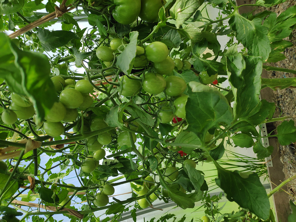 Куст в теплице больше метра, помидорчиков много, пасынковала, потому что , слишком много было пасынков, начали созревать в июле, все плоды ровные, глянцевые, вкус томатный